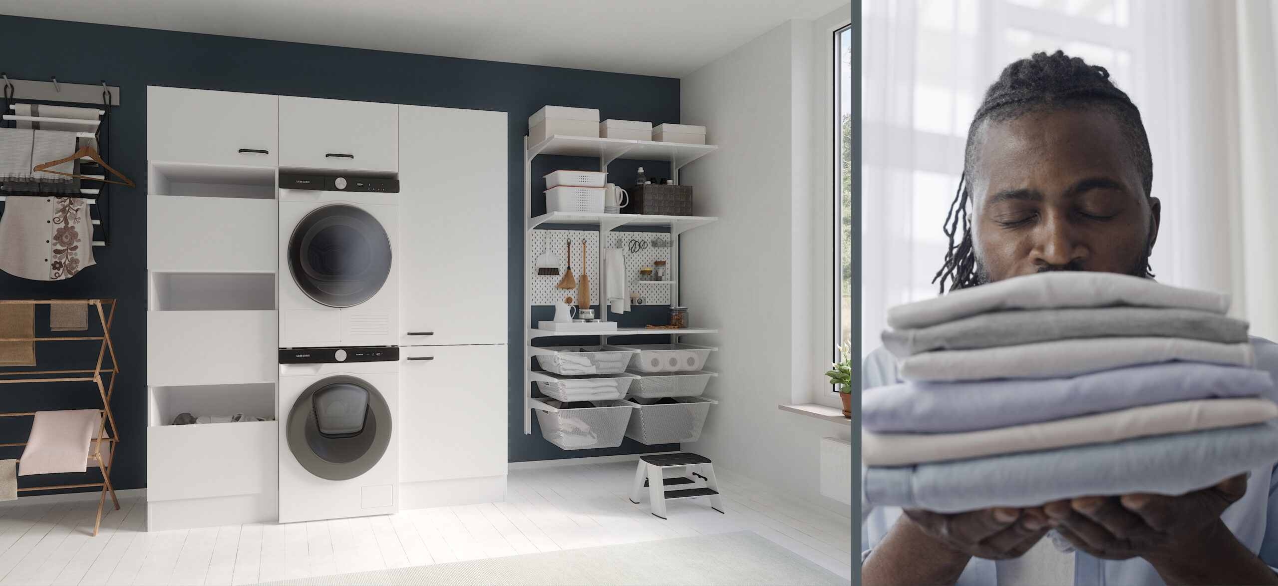 Die Lösung: ein Raum oder Teil der Wohnung der das alltägliche Leben verstaut und Platz für Wäsche und Arbeiten beinhaltet.